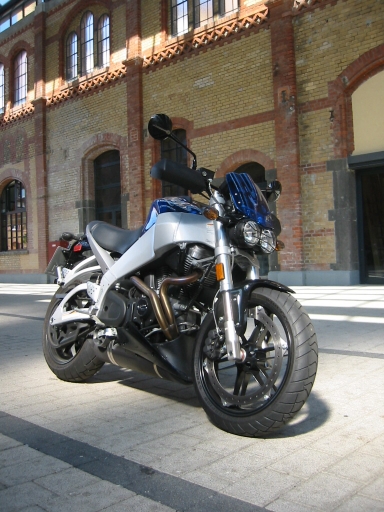 Einmal mehr polarisiert Erik Buell mit der XB 9 Citycross seine Anhänger. Transluzente Kunstoffteile bei Frontschild und Tankcover erinnern an die guten alten MAC Computer. Unser F.A.S.T Ansaugluftsystem freut sich schon auf starke Auftritte. Dem breiten Lenker werden bald noch breitere folgen. Leute das Ding ist cool! |