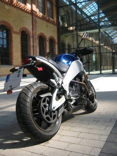 Eine dickere Gabel, Belt- und Beltschutz von der 12er. Mit den schwarzen Felgen kommt die vordere Bremsscheibe richtig zur Geltung. Die Griffprotektoren, nun ja da fehlen auch uns die Worte... eben 2 Teile mehr zum abschrauben. Der 9er Kurzhubmotor zum attraktiven Preis, die Shortstrokeattack geht in die zweite Runde. Wir freuen uns! |