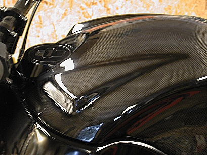 Handlaminierte Carbonteile in sehr guter Qualität und eigenständigem Design. Besonders interessant ist das Tankcover und die Verkleidungsteile, sowie das 1/2 Personenheck. Alle Teile sind auch in Fiberglas lieferbar.